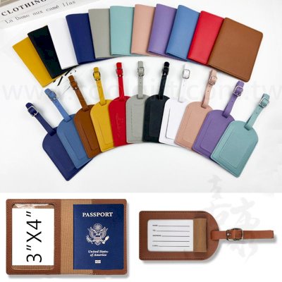 行李牌-約7x11cm±1cm 護照夾-約11x14.8cm±1cm 材質:PU 顏色:紅、棕、深藍、淺藍、黑、銀 包裝:手工盒 特性: 1.內裡有三個卡夾層+機票夾層+筆插孔+護照層 2.可拆卸吊帶-PU搭配金屬針扣 3.車縫油邊工藝-耐用 ※LOGO客製方式:網版印刷、壓印、彩印、燙金