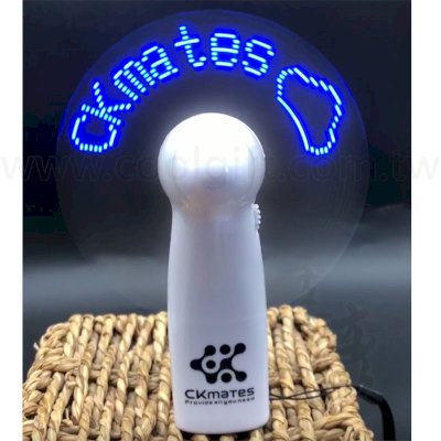 材質:ABS 包裝:白盒 尺寸:10.8x3.5x5.3 CM 說明: 1.閃光字的內容可中文字、數位、字母、符號。 2.採用紅色7顆LED燈(燈光顏色可選:紅色,黃色,藍色,白色,綠色等,不同燈價格不同。) 3.如果閃光內容有中文則需11顆LED燈。 4.電池規格:4號電池x3(出貨無附) ※LOGO客製方式:手柄-網版印刷、扇葉-閃字 ※產品上圖文標章僅供參考若欲使用須取得授權