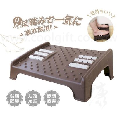 尺寸:約34.5x25x12.3±3% 材質:聚丙烯(PP) 包裝:彩盒 特性: 1.活絡足底,滾輪、顆粒按摩,輕鬆享受腳底按摩 2.給予足部合適的支撐,端正坐姿提高工作效率 3.提供肌肉組織刺激性的按摩與舒緩 ※注意事項:請坐著使用,切勿站立於產品上