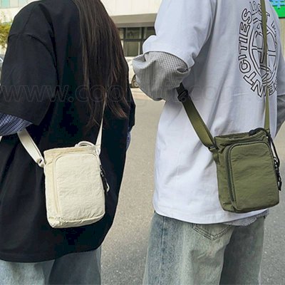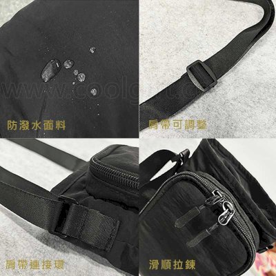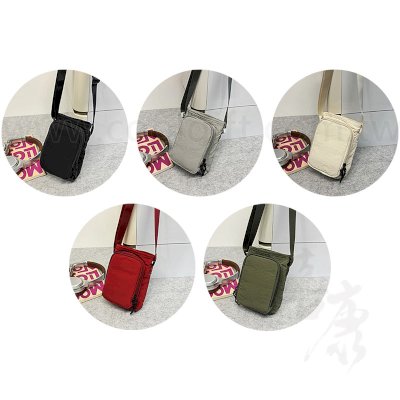 尺寸:約12x20x5cm 材質:尼龍 顏色:白、灰、黑、紅、綠 特性: 1.防潑水面料 2.拉鍊滑順 3.肩帶可調節