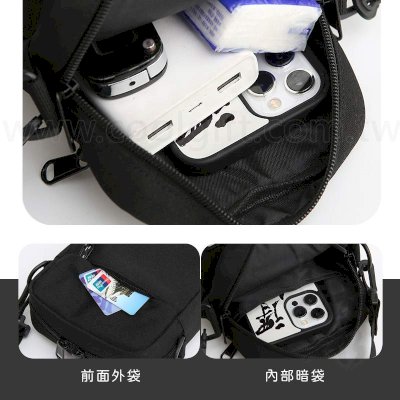 材質:滌綸網布 顏色:依現貨顏色隨機混出 尺寸:約W13xH20.5cm、背帶最長約125cm 包裝:OPP袋 特色: 1.簍空網格透氣速乾 2.前置插袋收納小物 3.便攜出行一背即走