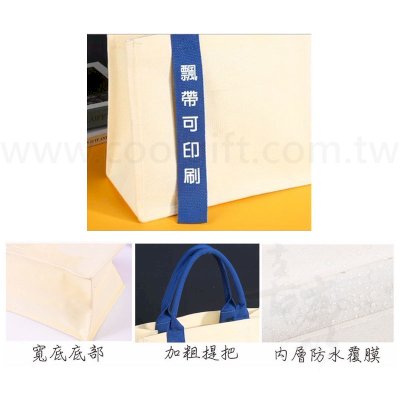 尺寸:32x28x15cm(A4) 特點:加粗提把、內層防水覆膜 ※LOGO客製方式:網版印刷/轉印