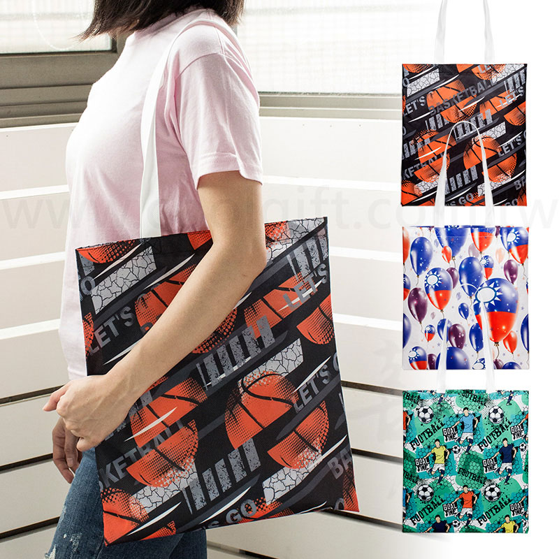 產品材質: 不織布, 80g/m2 產品尺寸: 袋身: 37 x 42 cm / 長提把 (因材料縮率以及人工車縫,成品尺寸誤差正負5-8% 為正常範圍。) 包裝: 散裝,每50個入一塑膠袋 特點: 背著走的廣告袋!!! 可全彩滿版印刷超吸睛,實用又環保~ 再也不要用塑膠袋了! 購物袋是活動、店家...等不可缺少的祕密武器。 滿版印刷可將您的全彩圖100%表現於袋身上,袋身兩面可不同圖。 不織布可於大自然中分解的材質。 ※LOGO客製方式:全彩昇華熱轉印 ※印刷尺寸:全版全彩