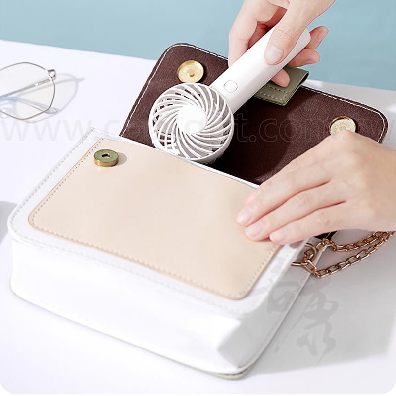 尺寸:約6.1x14.8x4.5cm 材質:塑膠 特色: 1.手持風扇可隨身攜帶亦可放在桌面使用 2.迷你小巧放口袋好攜帶 3.3檔風量,一鍵調節 4.雙重降噪設計靜享清涼