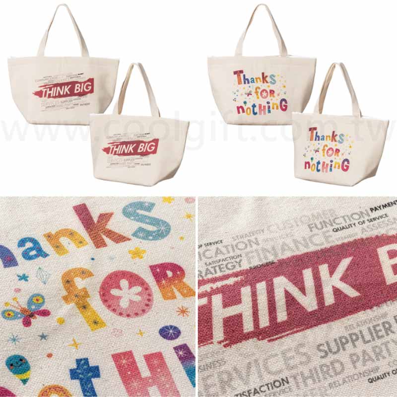 ※LOGO客製方式:全彩數位直噴(無法印刷白色墨水,所以若設計圖有白色,成品即會呈現帆布底色)