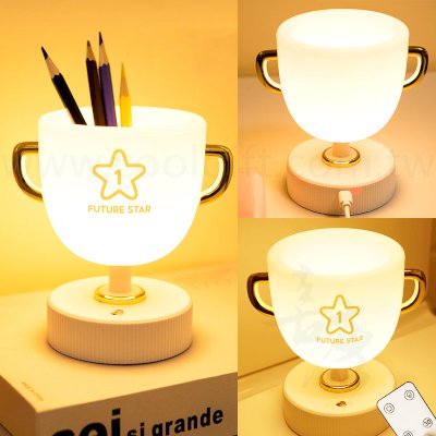 尺寸:約12.8x9.6x13.6CM 材質:PS 供電方式:USB充電 特色: 1.可當筆筒、小夜燈,餵奶起夜都適用 2.可遠程遙控