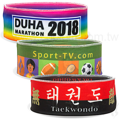 超細纖維寬板體育頭帶,材質可透過昇華熱轉印的方式將您的全彩LOGO完整的呈現出來,設計圖檔若為CMYK最佳