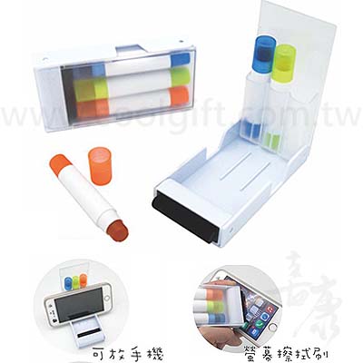 功能:三入螢光筆+手機架+螢幕擦拭刷