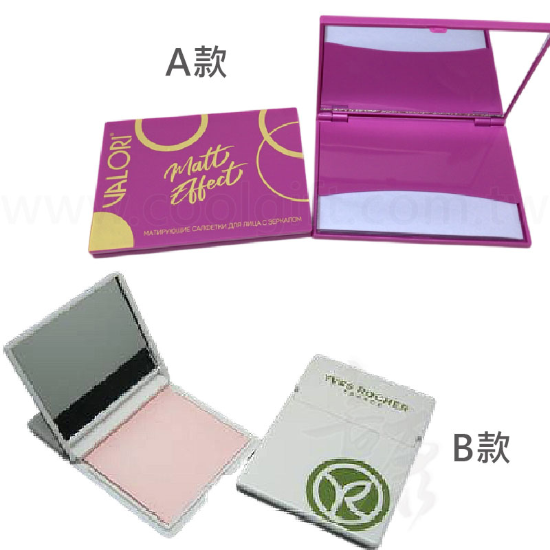吸油面紙:50張 包裝:OPP袋裝 尺寸:A款約9.5x6.8x0.8cm、B款約9.5x7x0.8cm