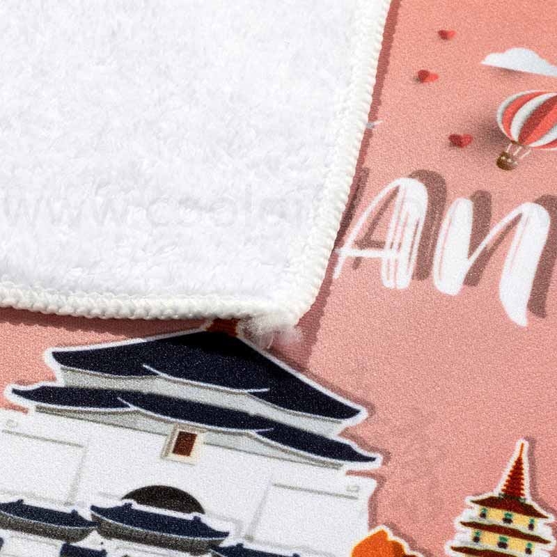 3.毛巾四邊預設以白色拷克線收邊,可配合圖稿,換成其他接近色線。