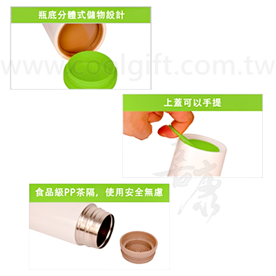 3.瓶底分體式儲物設計、可放置茶包、咖啡、藥品等等..。