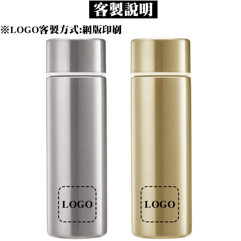 容量:150ml±3%;尺寸:15.2x4.5cm 重量:125g±3% 顏色:金色、銀色 尺寸:145x47x47mm、杯口直徑35mm±3% 材質:內膽-316不鏽鋼、上蓋-304不鏽鋼+PP 耐熱:-20℃~120℃±3% 保溫效力:6小時50℃3% 包裝:彩盒 ※LOGO客製方式:網版印刷/雷雕 ※印刷尺寸:約2.5x2.5cm