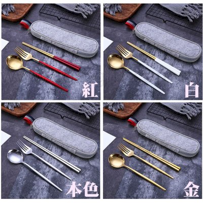 材質:餐具-#304不鏽鋼、收納袋-毛氈布 規格:湯匙/4.7x21cm、叉子/3x21.5cm、筷子/長21cm、布套/7.5x23.5cm 包裝:OPP袋裝