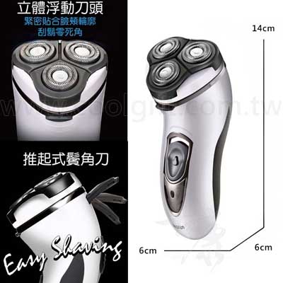 商品規格:DC 5V /3W 商品尺寸:約14x6x6cm 額定電壓:DC 5V 消耗功率:3W 重量:約420g 防水性能:不可水洗 特色: 1.推彈出式鬢角修剪器,修剪細軟鬍鬚和鬢角 2.三刀頭切割系統,快速俐落刮除鬍鬚 3.全方位獨立浮動刀網,更精確感應貼面系統 4.雙環刮鬍刀圈,多了2倍的刮鬍面積 5.每次充電約5個小時、每天使用1~2分鐘、約可使用15天 6.USB充電式設計,便攜式充電線 7.USB國際通用多元充電性 8.可拆卸式刀頭,清理更方便
