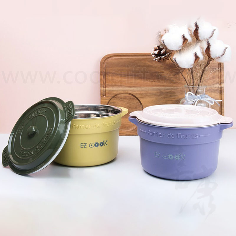 尺寸:約18x15x11cm 容量:不鏽鋼內鍋-約1100ml、碗外殼與上蓋塑膠材質 重量:約235g 材質:內鍋-304不鏽鋼 顏色:紫、黃 特性: 1.雙層隔熱設計,端起不燙手 2.防漏碗蓋,悶煮最方便 3.可分離設計,一碗變兩碗,清洗更乾淨 4.琺瑯鍋造型,可愛時尚 5.加深容量,可放下兩塊麵,讓您吃到飽