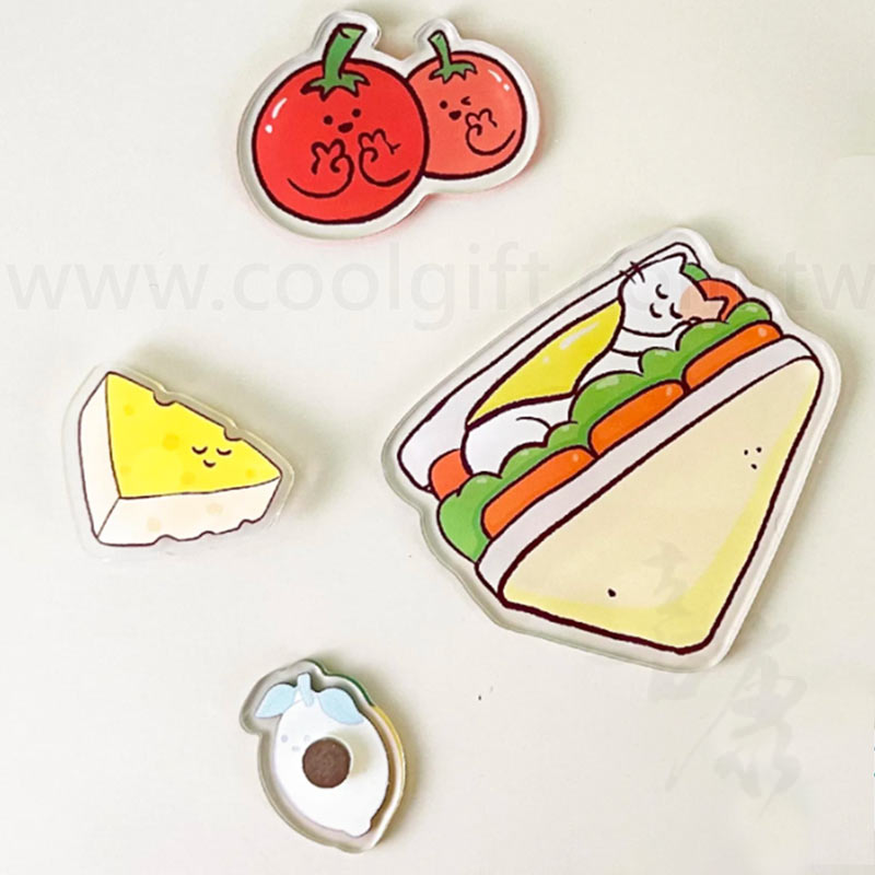 材質:透明壓克力 厚度3mm 尺寸:壓克力造型磁鐵-約5x5cm、7x7cm、9x9cm 背面磁鐵款式(擇一):軟性磁鐵-30mm、強力磁鐵-10mm 產地:台灣製 包裝:簡易OPP袋 ※客製方式:全彩印刷+白墨