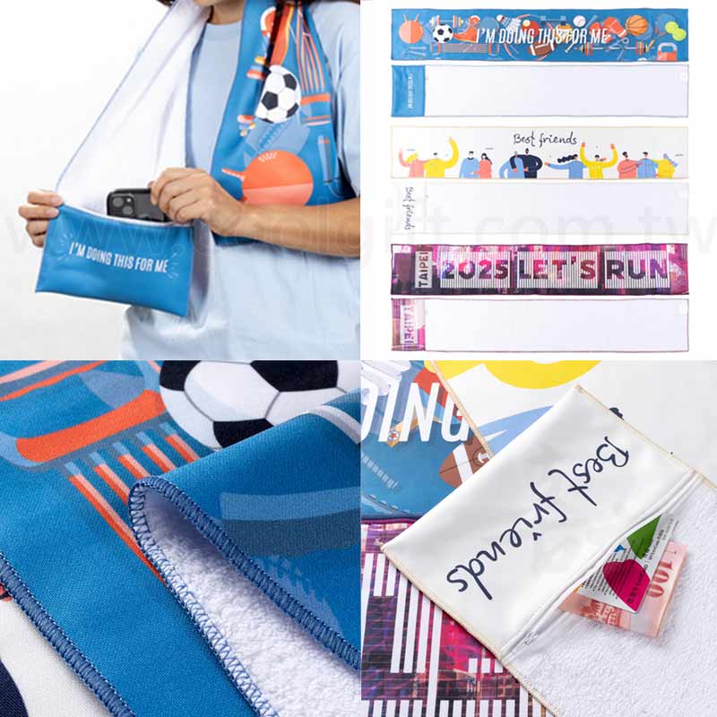 3.運動毛巾含拉鍊口袋,可放隨身小物