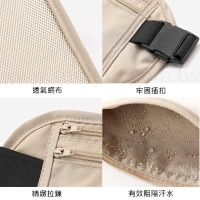 隱形腰包 採用透氣網布和 防水面料 配有堅固扣環和 雙拉鍊設計 可有效防止物品丟失 適合戶外運動和 旅行