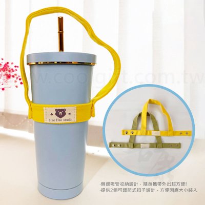 尺寸:直徑約9x高2.5cm、手提長約36cm 材質:12安帆布 包裝:OPP袋裝 特色: 1.側邊吸管收納設計,隨身攜帶外出超方便! 2.提供2個可調節式扣子設計,方便因應大小裝入。 ※LOGO客製方式:布標-網版印刷 ※印刷尺寸:約3x1.5cm內