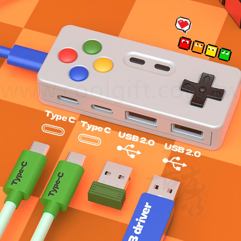 尺寸:約7.8x3.4x1.6cm 材質:PVC 輸入接口:Type-C 輸出接口:Type-Cx2、USB Ax2 芯片速度:USB2.0