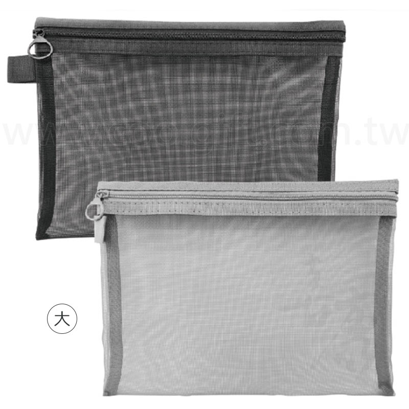 一款灰色和黑色的 網格拉鏈袋 可放置化妝品、文具等小物