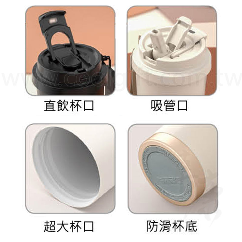 尺寸:約Φ9.2x18.2cm 容量:約520ml 材質:外殼-316不鏽鋼+內膽-陶瓷塗層 包裝:彩盒 特性: 1.直飲口杯 2.吸管口 3.超大杯口 4.防滑杯底 5.有SGS認證 ※LOGO客製方式:網版印刷/雷雕 ※印刷尺寸:約7x7cm/4x1.2cm
