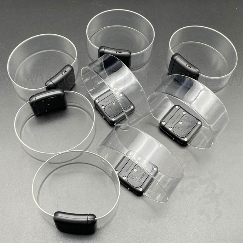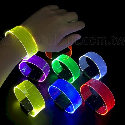 尺寸:約長19x2.5cm 材質:TPU+ABS 手環顏色:透明款 燈色:紅、綠、藍、白、粉、橙、黃(擇一) 電池:2顆CR1220鈕扣電池 使用時間:約30-40小時 包裝:OPP袋 ※LOGO客製方式:手環-網版印刷