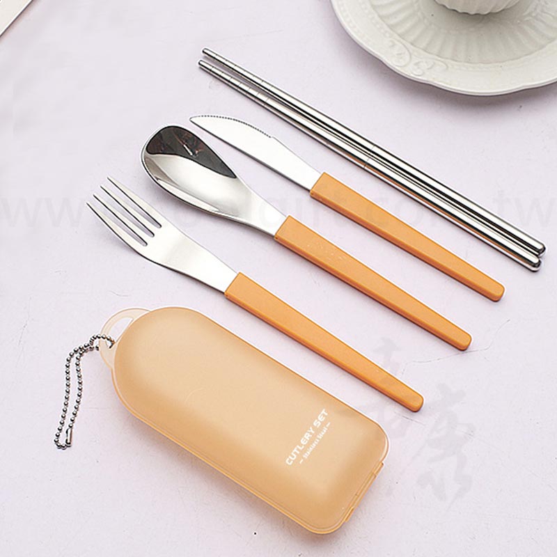 材質:餐具盒-PP;筷、匙、叉、刀-304不鏽鋼+PP
