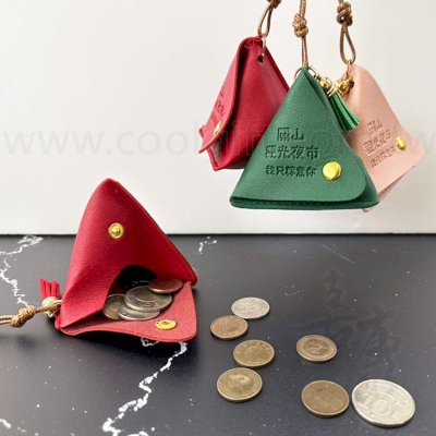 皮革三角形小錢包 可客製化壓印文字 搭配金色按扣