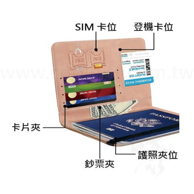 尺寸:約14.5x10.5cm 展開-約14.5x21cm 材質:PU 包裝:OPP袋 特性: 1.SIM卡位 2.登機卡位 3.卡片夾 4.鈔票夾 5.護照夾位